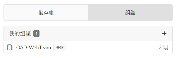 組織頁籤,點選您的組織(ex.OAD-WebTeam)進入組織頁面。 -
