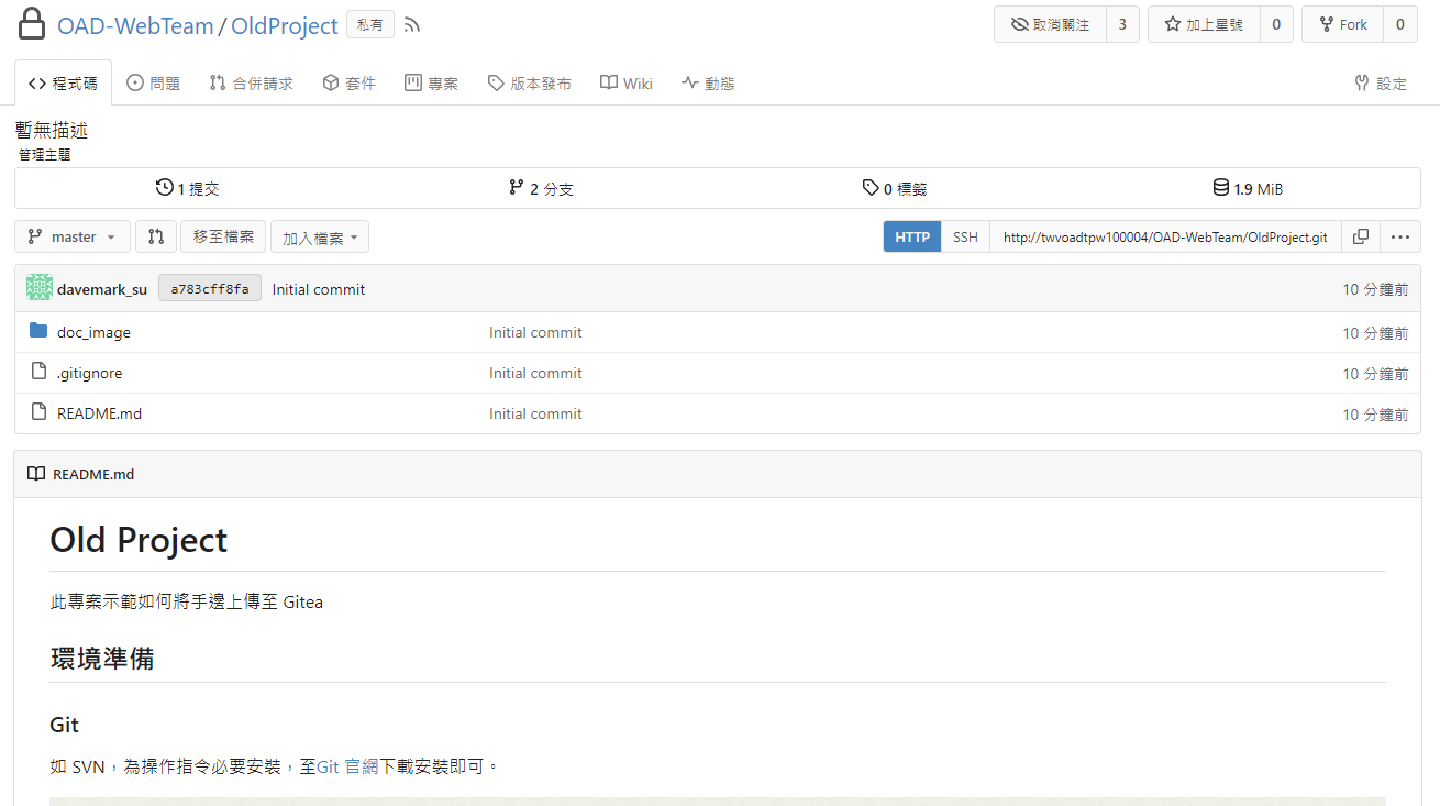 示範如何將手邊專案上傳至 Gitea