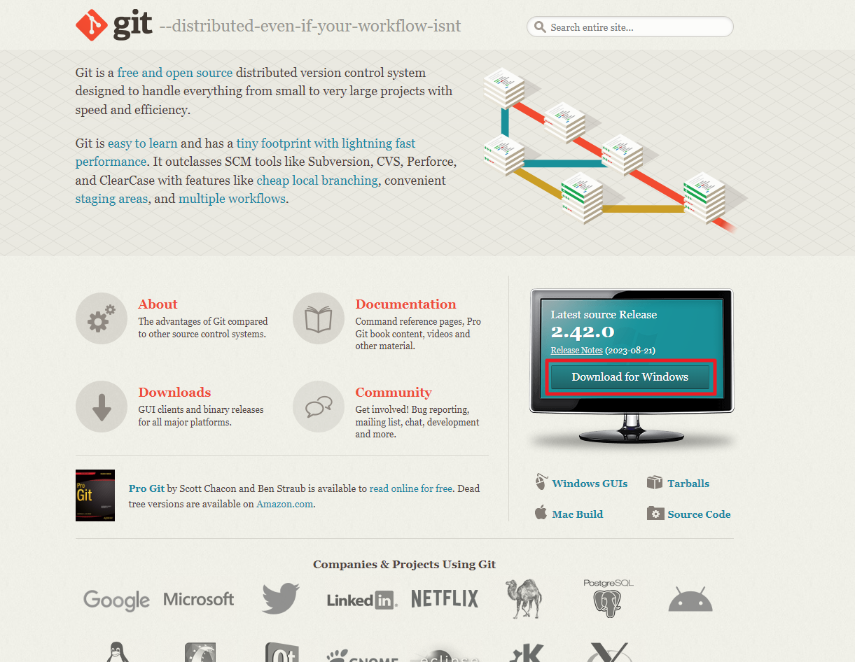如 SVN,為操作指令必要安裝,至Git 官網下載安裝即可。